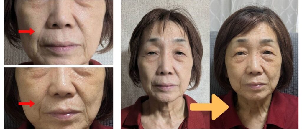 下記の写真は、ほうれい線ケアの一例です。