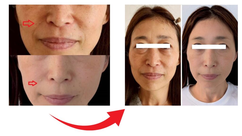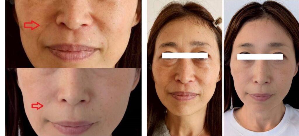 施術後、気になっていたほうれい線が徐々に薄くなっていった。顔に立体感が出て、肌トーンが明るくなり、より明るい印象になりました。