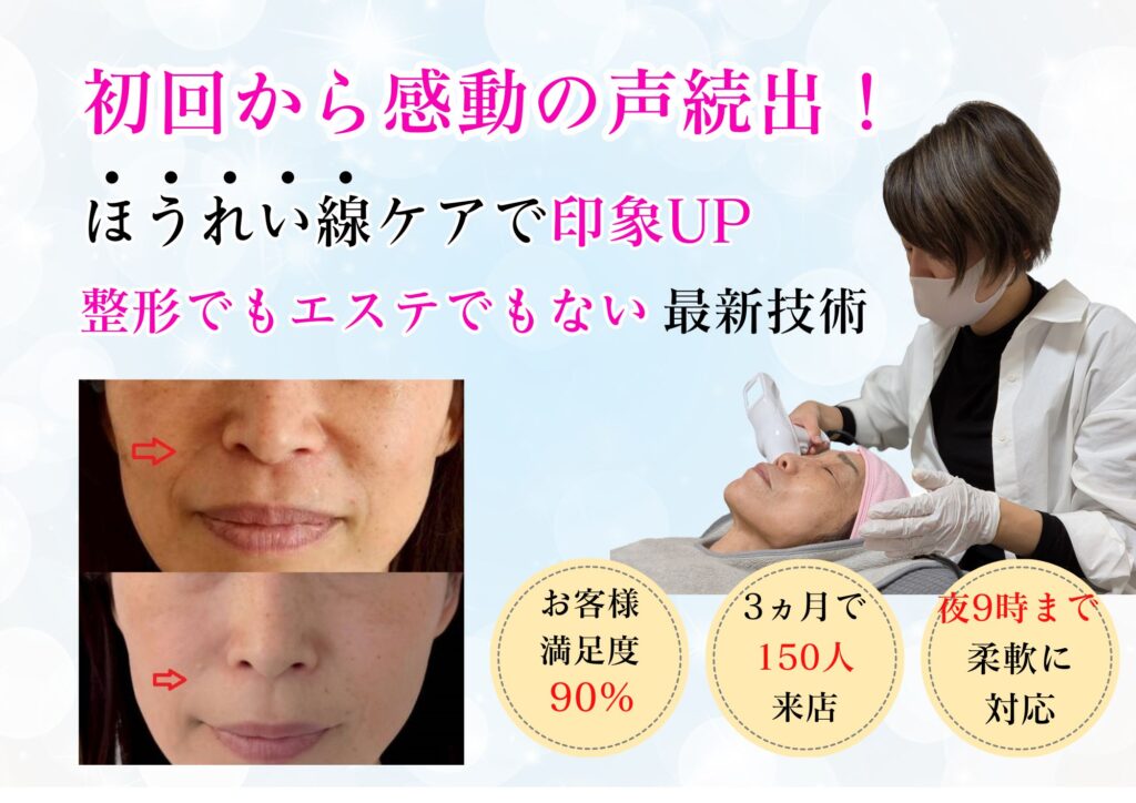 40代・50代になると、「ほうれい線」や「口元のシワ」が目立ち、疲れて見えたり、老けた印象を持たれやすくなります。